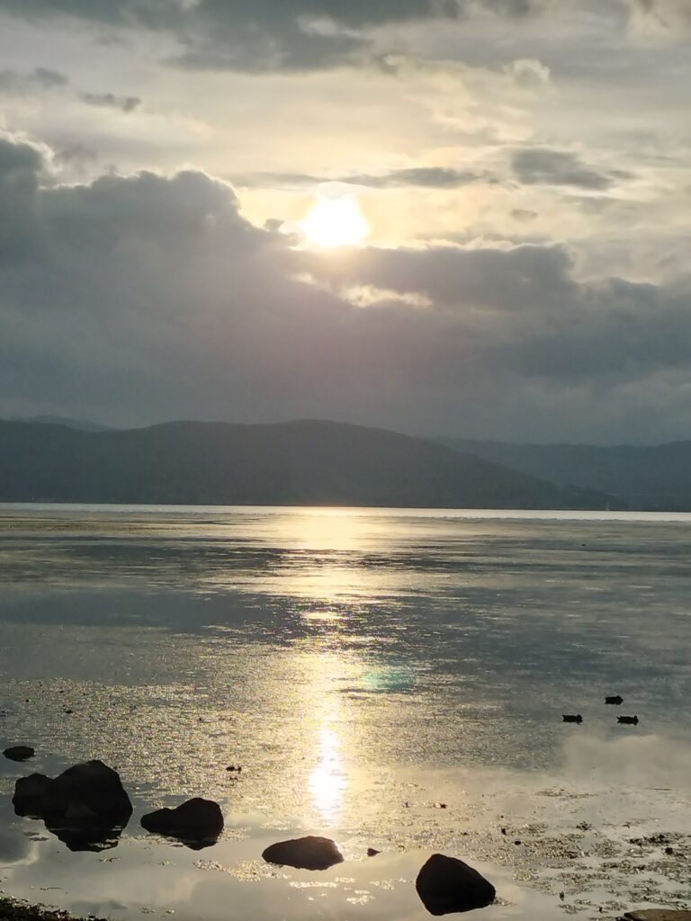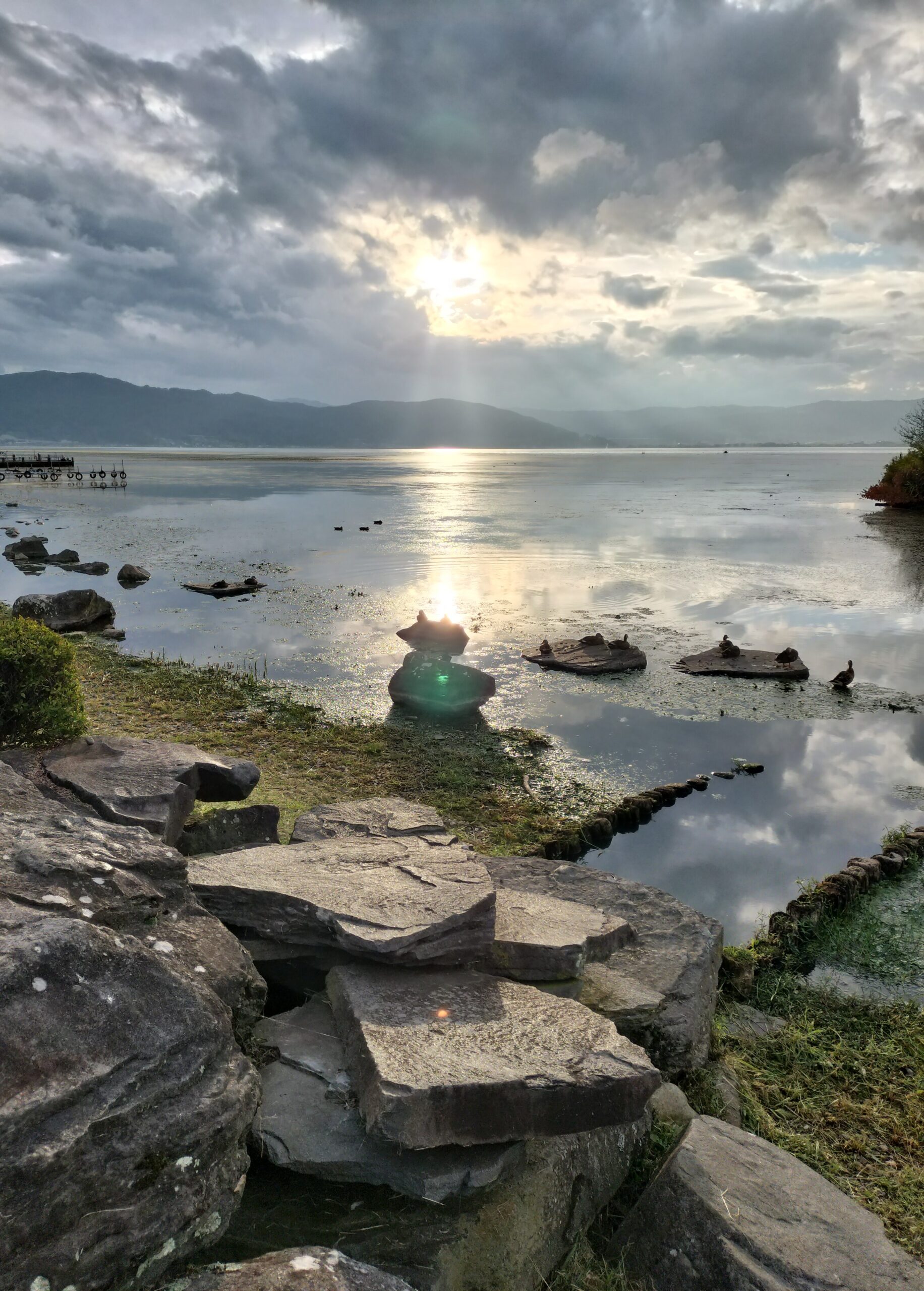 雨や曇りがちでしたが最後に晴れ間を覗かせてくれた時の諏訪湖の景色。